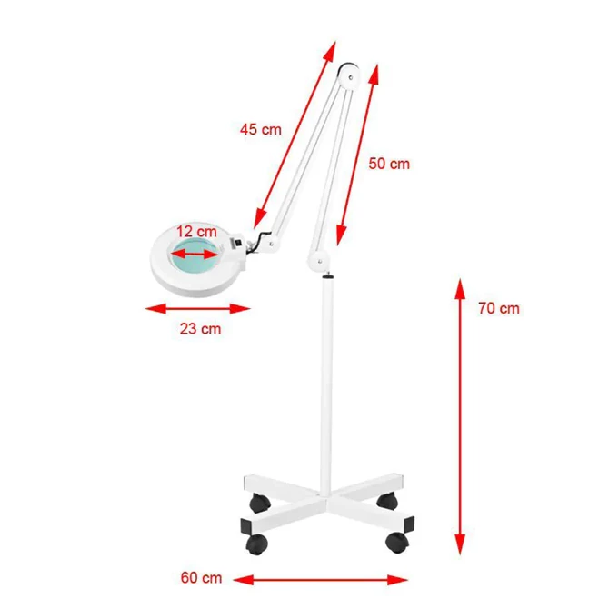 Svjetiljka s povećalom od 5 dioptrija, svjetiljka bez sjene na stalku s četiri kraka.
