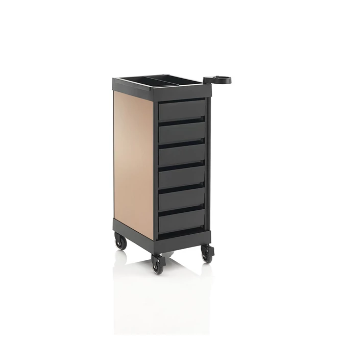 Visoko stabilna profesionalna kolica modernog dizajna. Opremljena sa 6 ladica. Dostupna u 4 boje. Višesmjerni kotačići i proširiva radna površina s vanjskom pričvrstivom ladicom nude lakši rad, više prostora i apsolutnu udobnost.