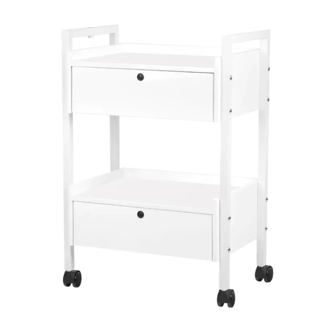 Jednostavan i funkcionalan metalni i drveni stol, s dvije prostrane ladice koje se zaključavaju ključem. Gornji dio ladice služi i kao polica. Stol ima četiri kotačića.