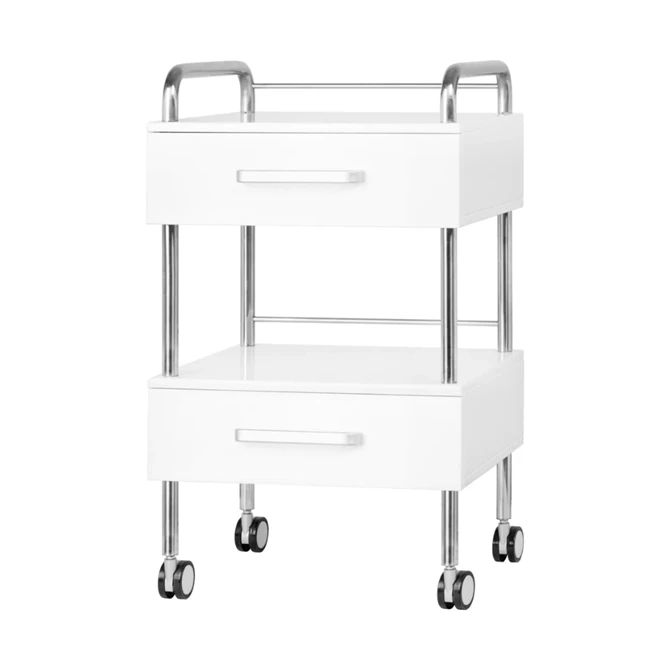 Visokokvalitetni podološki pomagač je funkcionalan kozmetički komad namještaja na kotačima. Zahvaljujući vašoj mobilnosti, možete ga prevoziti u druge prostorije za tretmane. Asistent ima dvije ladice za alate, pribor i policu za podološki glodalicu ili neki drugi uređaj.