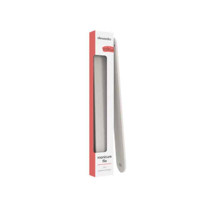 MANICURE FILE 100 / 180. Rašpica 2 u 1 za brzo i nježno skraćivanje, uređivanje te oblikovanje prirodnih noktiju. Rašpica ima dvije strane različite granulacije 100 i 180. VEGAN FORMULA.